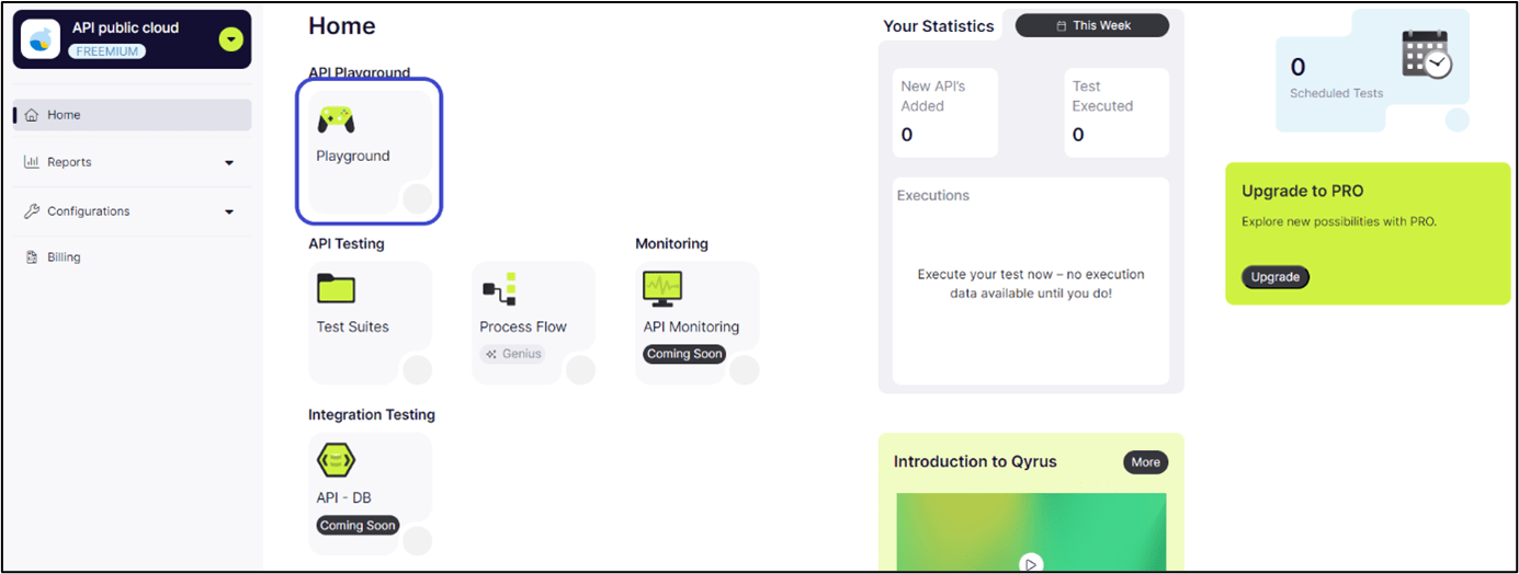 Step 1: From the dashboard, click on ‘Playground’.