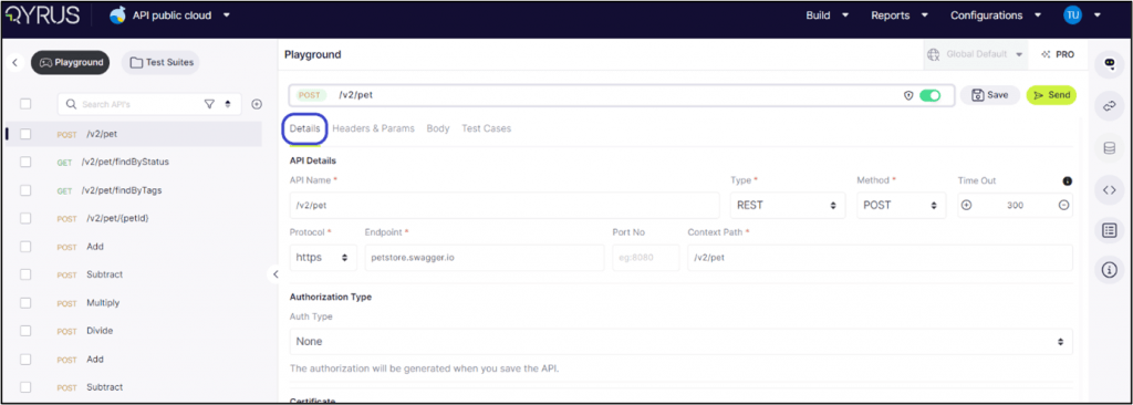 Select an API: The main screen will display all its intricate details under the ‘Details’ tab. Here, you can modify the API to fit your exact needs.