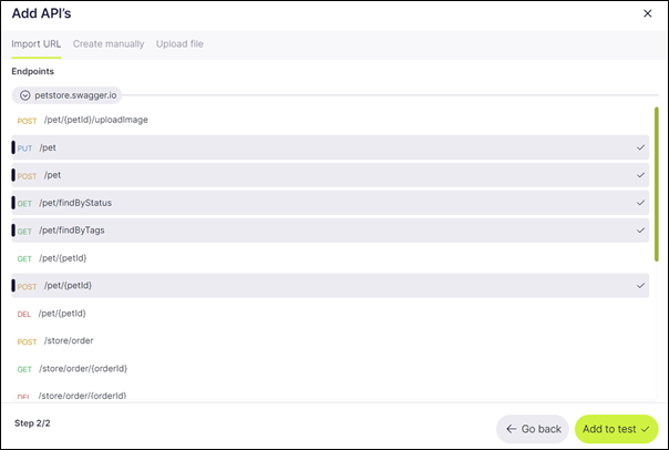 Step 4: Select all the Endpoints to add to testing and click on ‘Add to test’.