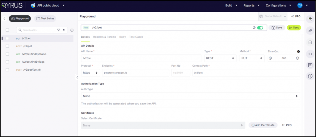 Protocol Configuration: The platform facilitates toggling between HTTP and HTTPS protocols, allowing users to secure API calls by opting for HTTPS where applicable.