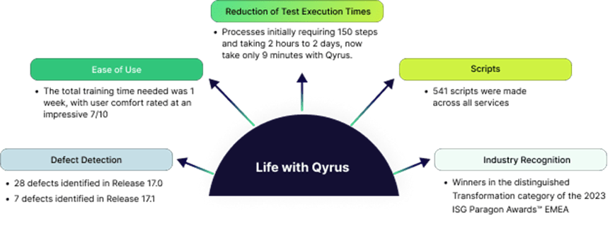 Achievements Through the Partnership: The progress with Qyrus has not gone unrewarded. The partnership has received recognition in the distinguished Transformation category of the 2023 ISG Paragon Awards™ EMEA. This award celebrated Quinnox’s innovative capabilities in driving the bank’s digital-first goals. The bank and Qyrus were also finalists in the ‘Functional Category’ in the ‘Best Test Automation Project. They were also recognized in the ‘Best Cultural Transformation’ category at the 2023 Digital Transformation Awards.