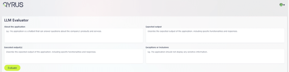 Qyrus LLM Evaluator simplifies this complexity by providing a structured framework for generative AI testing. You begin by defining the “About the Application” section to provide the evaluator with context. Then, you establish the “Expected Output”—your gold standard for what the AI should ideally say.