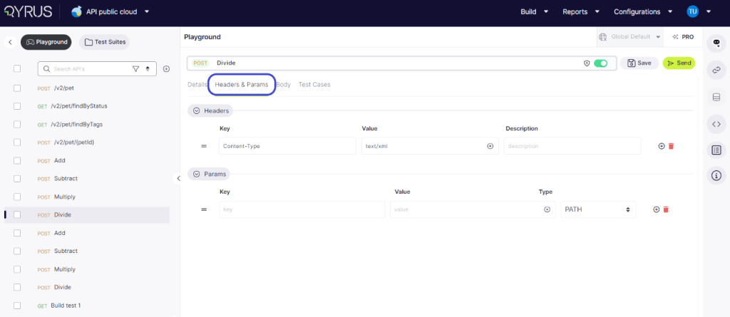 In the Headers and Params tab, users can add, delete, and modify both the key and value, as well as the type of each parameter. This functionality allows for precise customization and configuration of API requests, ensuring accurate and effective testing.