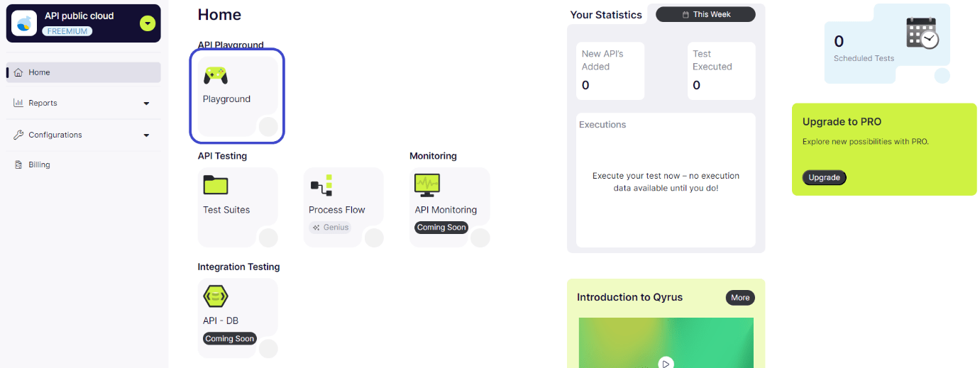 Step 1:  From the dashboard, click on the ‘Playground’.