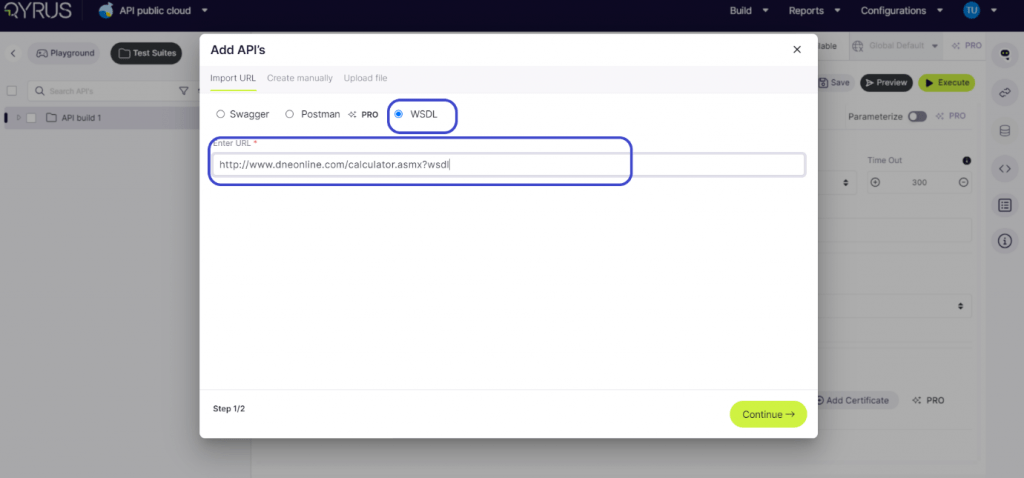 Step 1: Navigate to the Add API button and select “WSDL” if your API utilizes the WSDL format.