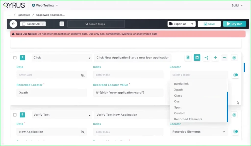 We have updated the Qyrus Recorder with improved locator detection and data handling. Now, after recording a session, all captured locator values are immediately populated and visible directly on the step page within the Qyrus platform.