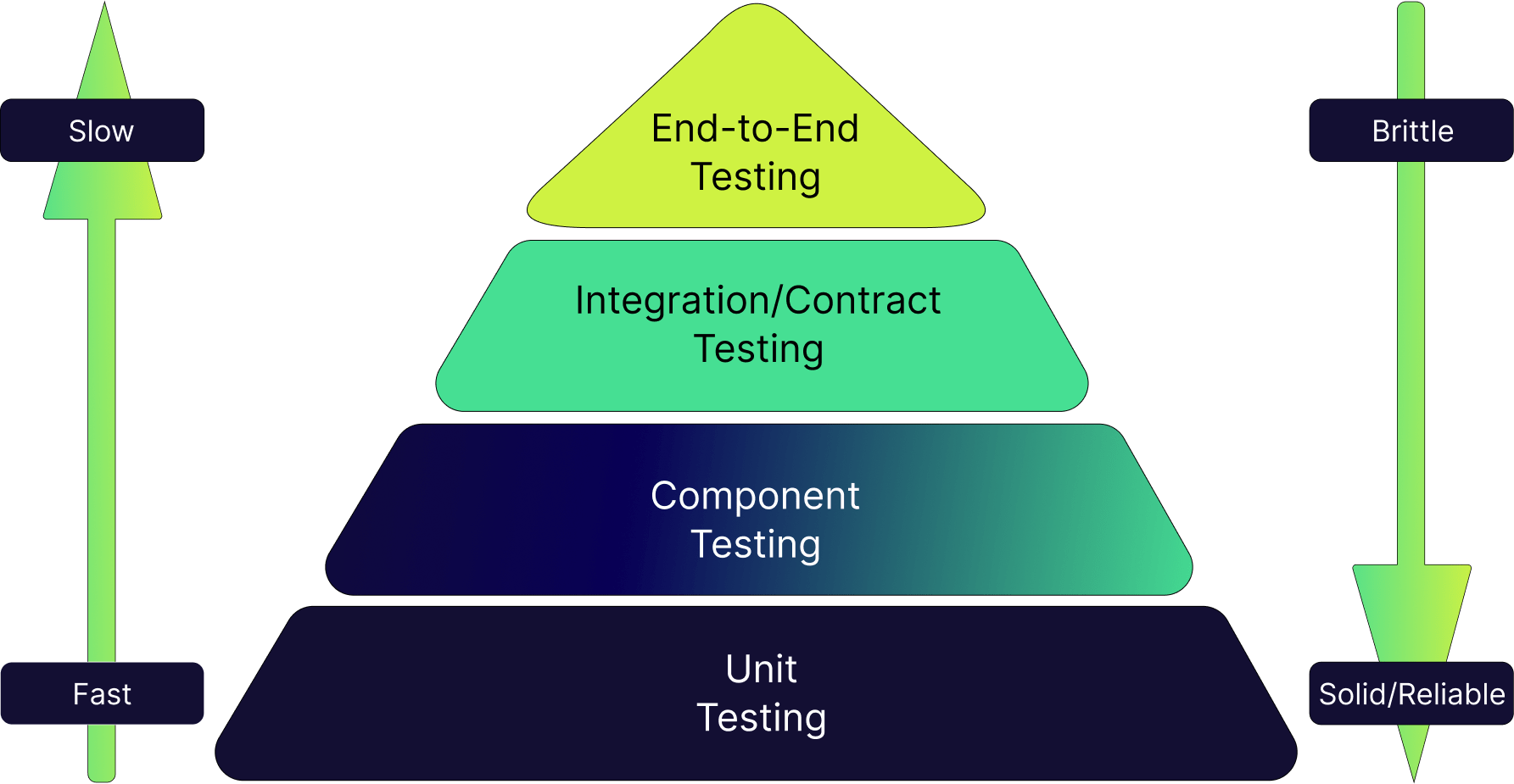 • Component Tests: These are tests that check the functionality and integration of a single service or possibly a group of related services. Component tests are more comprehensive than unit tests because they involve testing the service’s interfaces, dependencies, data, and different configurations.